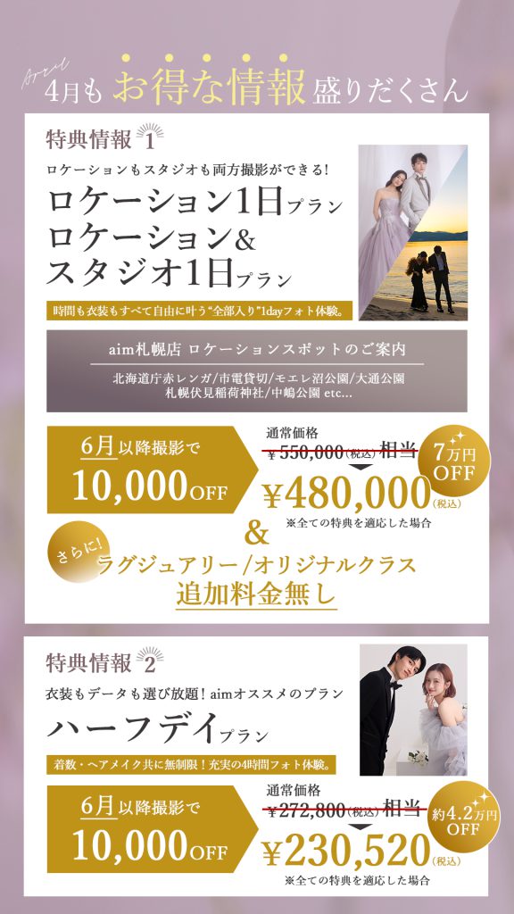 4月限定|aim札幌店 ブライダルキャンペーンのご案内
