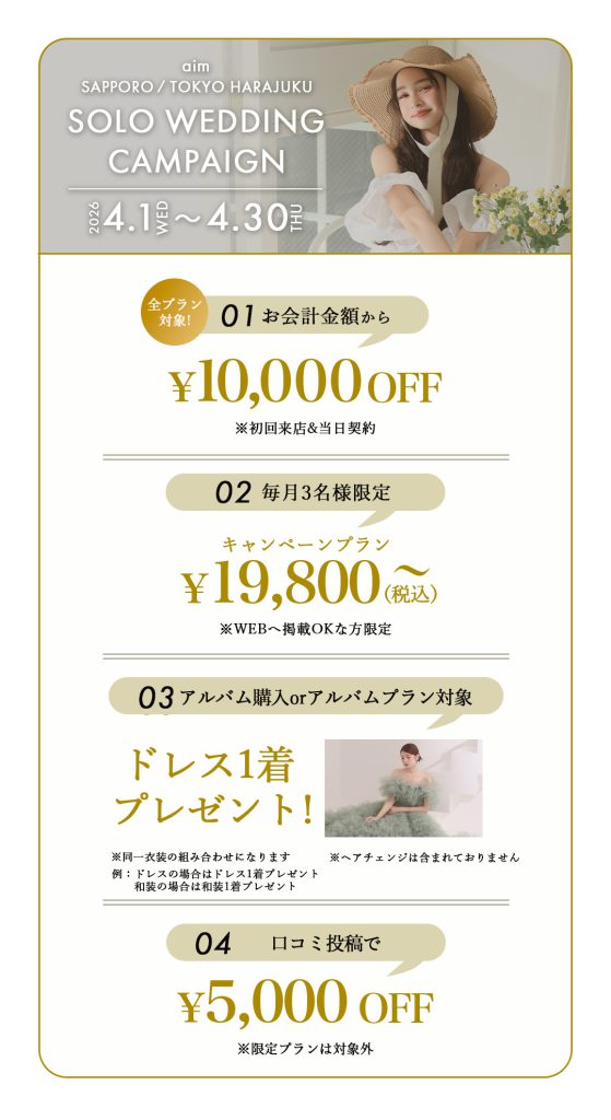 【4月は毎日対象!ソロウェディングキャンペーン】