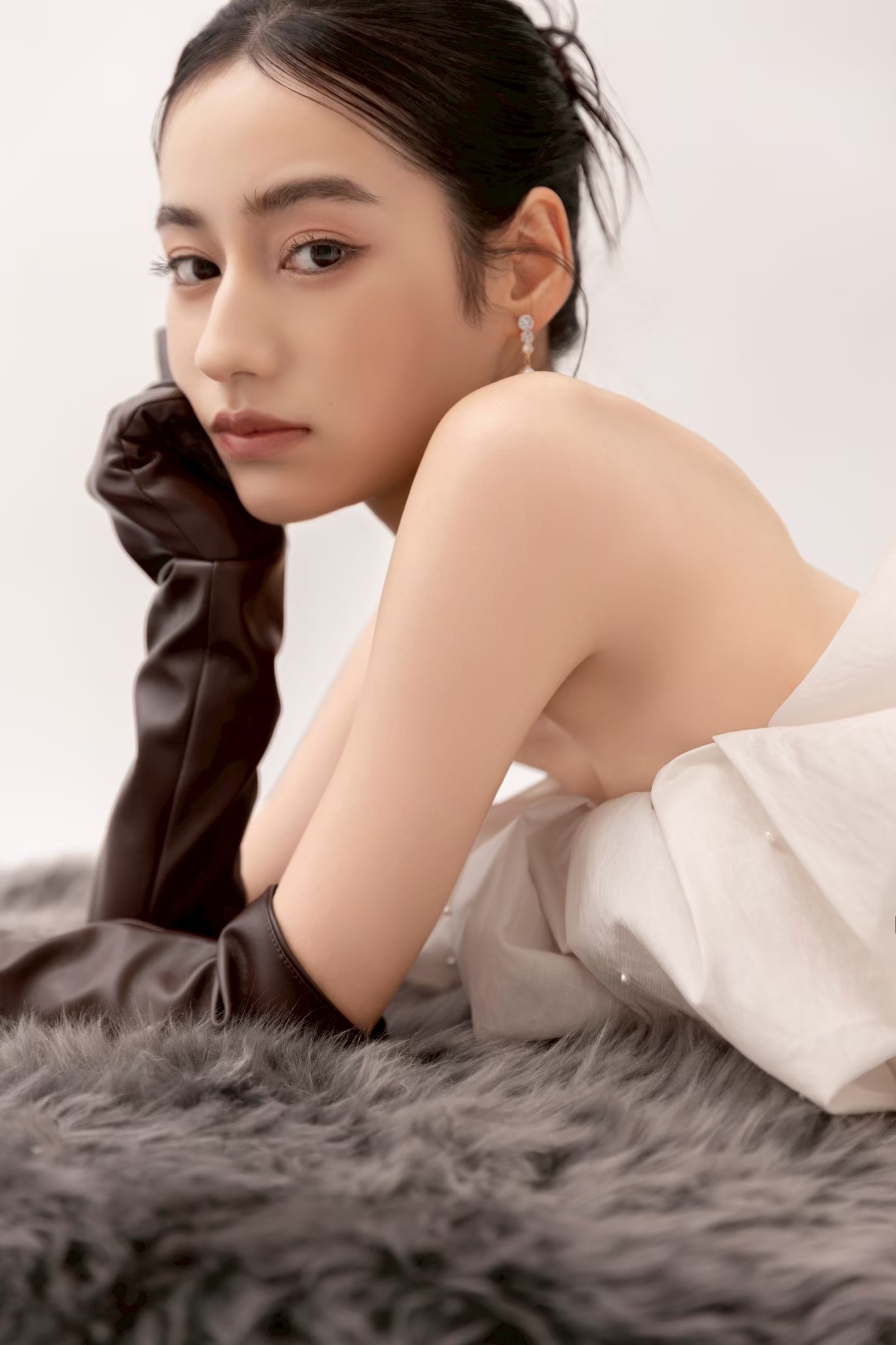 3枚目は、レザーグローブやパールを合わせた、都会的でクールな大人メイク。
