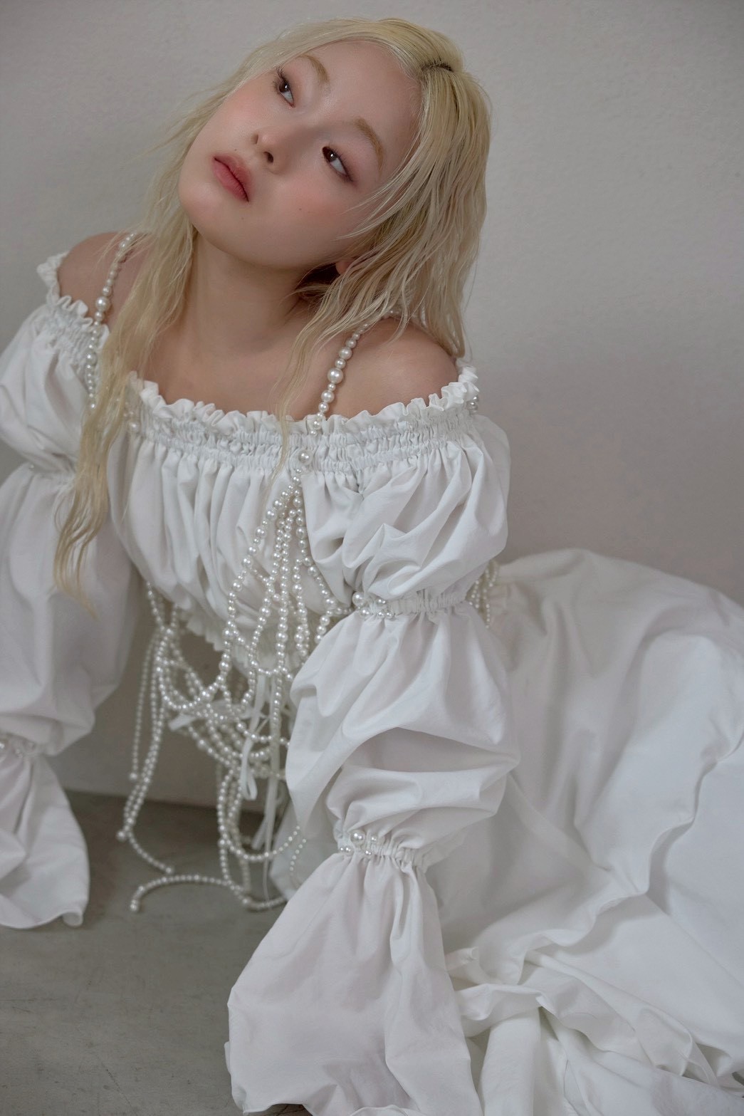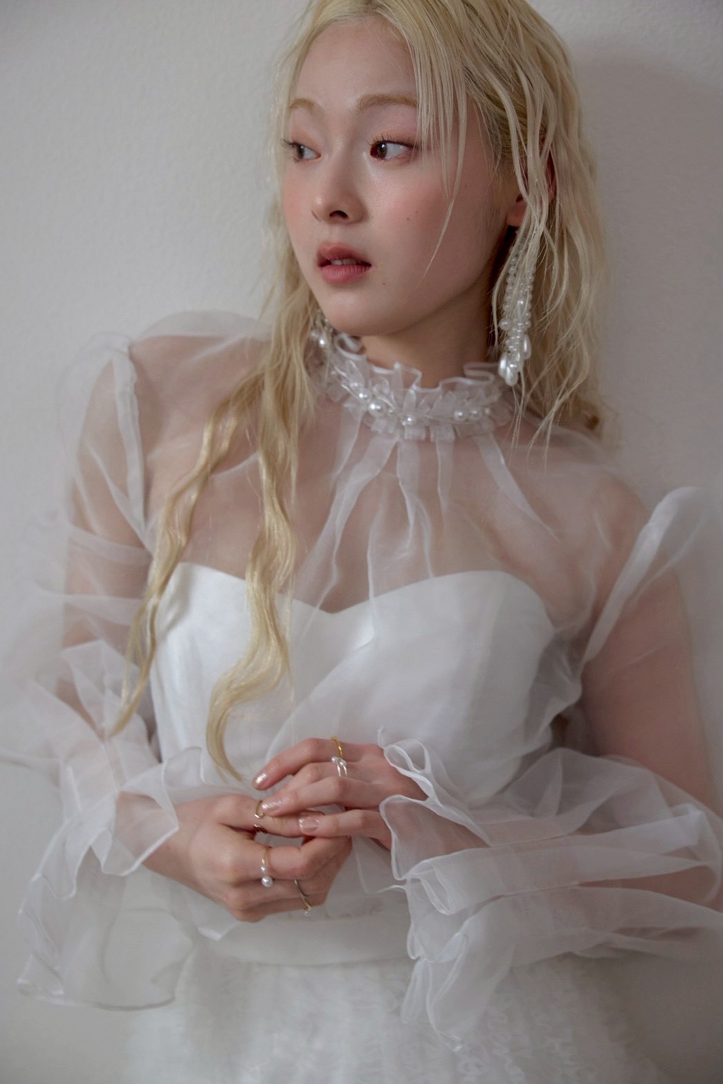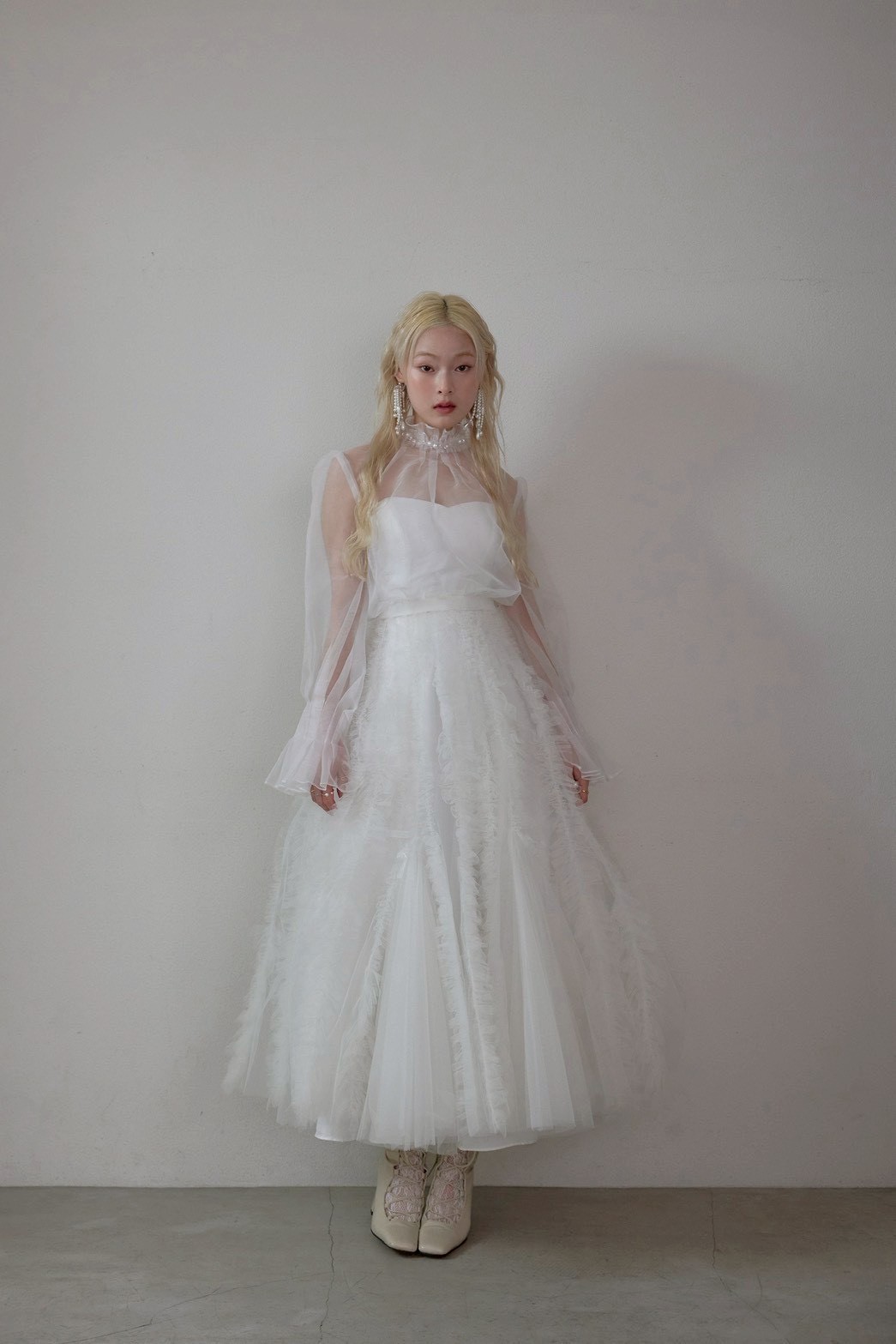 光を含んだシアーな質感と、純白のボリュームが幻想的なシルエットに。