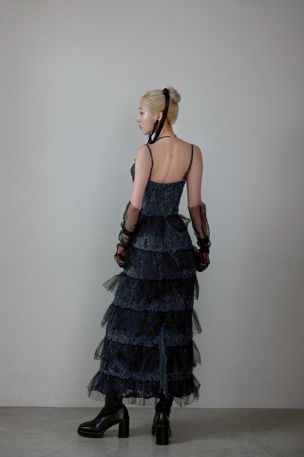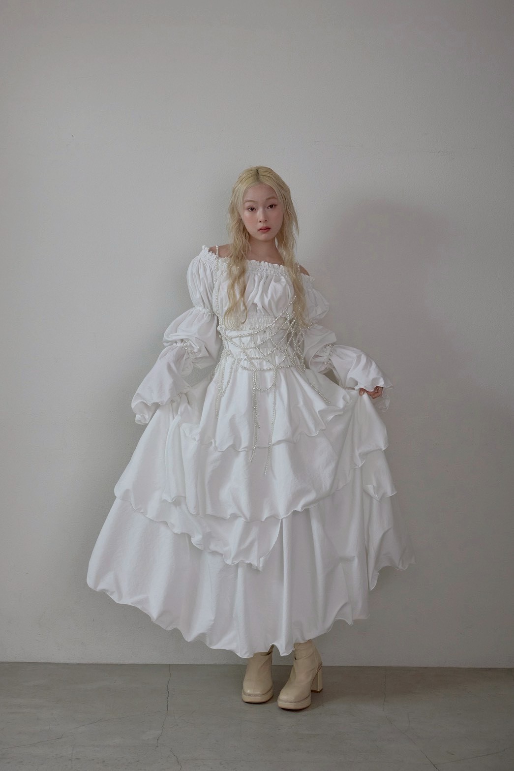 重なり合うティアードフリルに、ビスチェで合わせたパールの輝き。