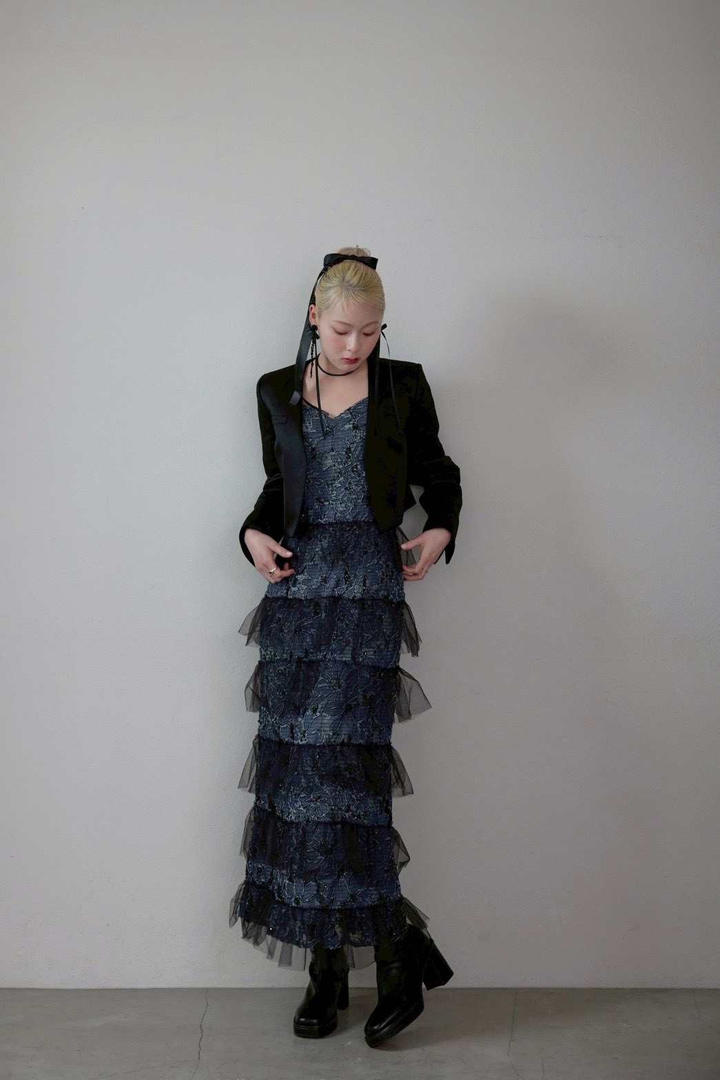 重なり合うチュールの深みに、ジャケットを羽織る。