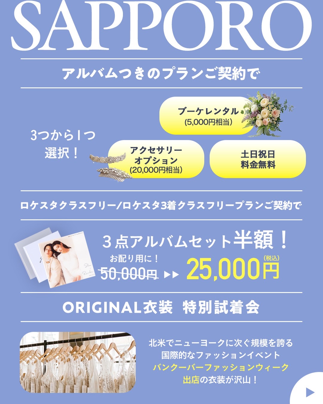 (ラグジュアリー&オリジナル衣装着放題オプション通常50,000円→25,000円/ハーフデイプラン限定)