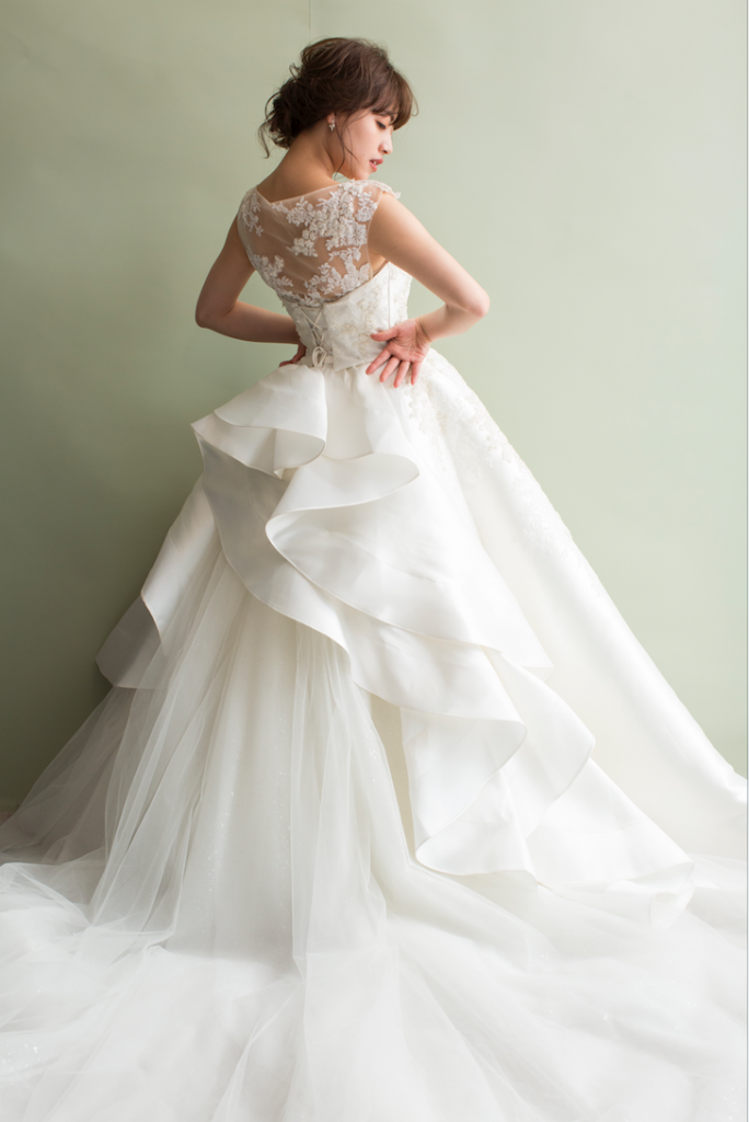 トレーンはフリルを付け外し可能となっており、外すとより大人っぽくシンプルに着ていただけます!
