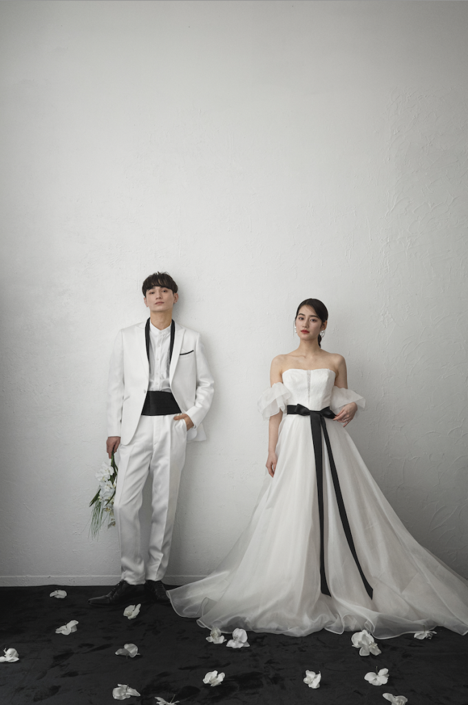 こんにちは!北海道にあるフォトスタジオaim札幌店です。 今回ご紹介するのは、圧倒的な存在感を放つ「フリル」を主役にした2つの異なるアプローチ。 潔いシルエットと、あえてエッジを効かせた小物使いが生み出す、究極のモードスタイルを提案します。 「かっこいい」も「美しい」も、どちらも妥協したくない。 そんな感度の高い花嫁様に捧げる、最新ビジュアルをぜひご覧ください。
