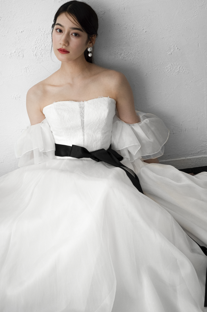 実は、パフスリーブのお袖の付け外しが可能な2way。ぜひ店頭でのご試着でお試しくださいませ!