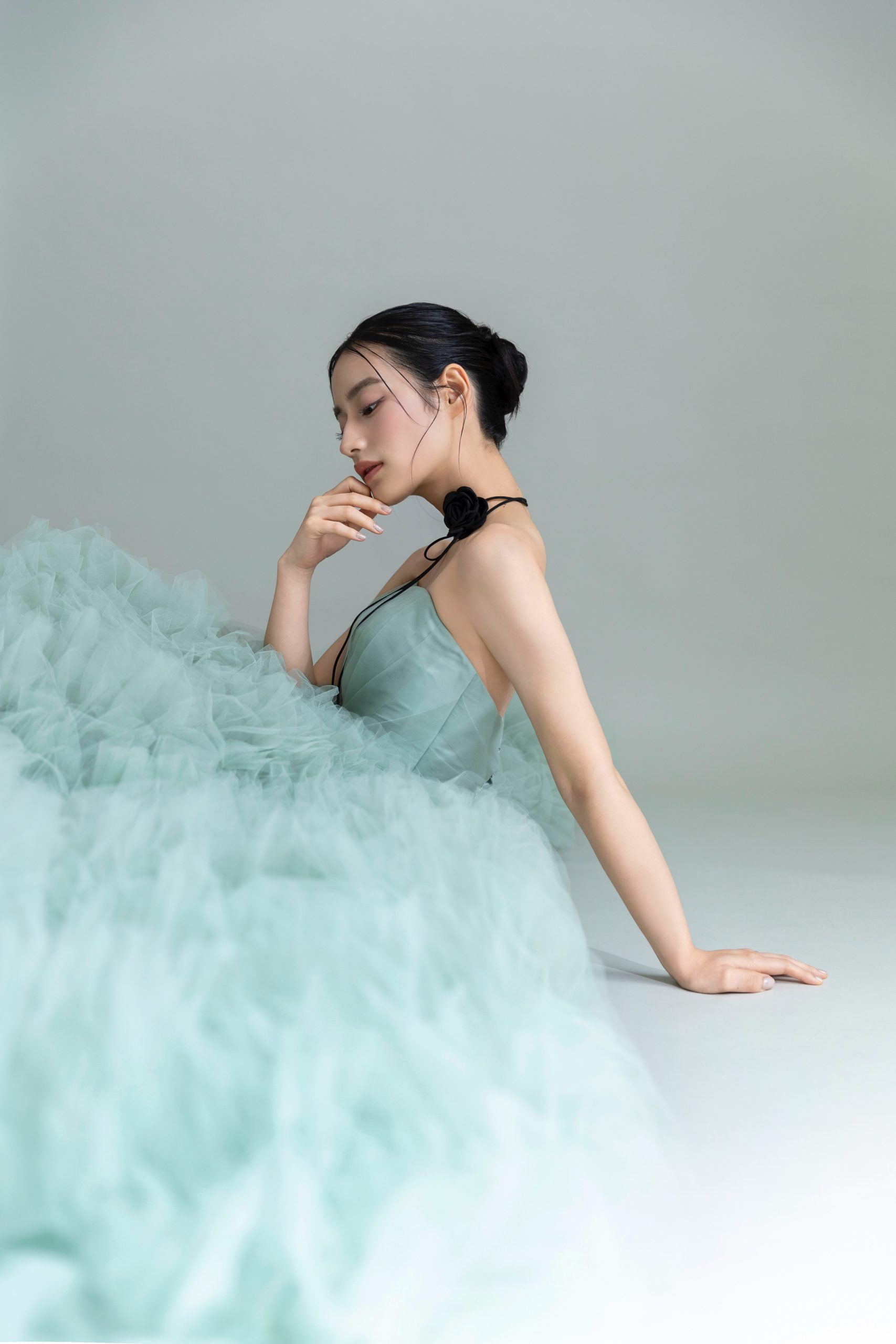 フレッシュなミントグリーンが印象的な、爽やかなドレス。