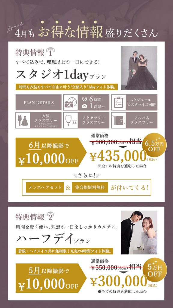 ①プラン金額より10%OFF!!(当日のご契約ご入金)