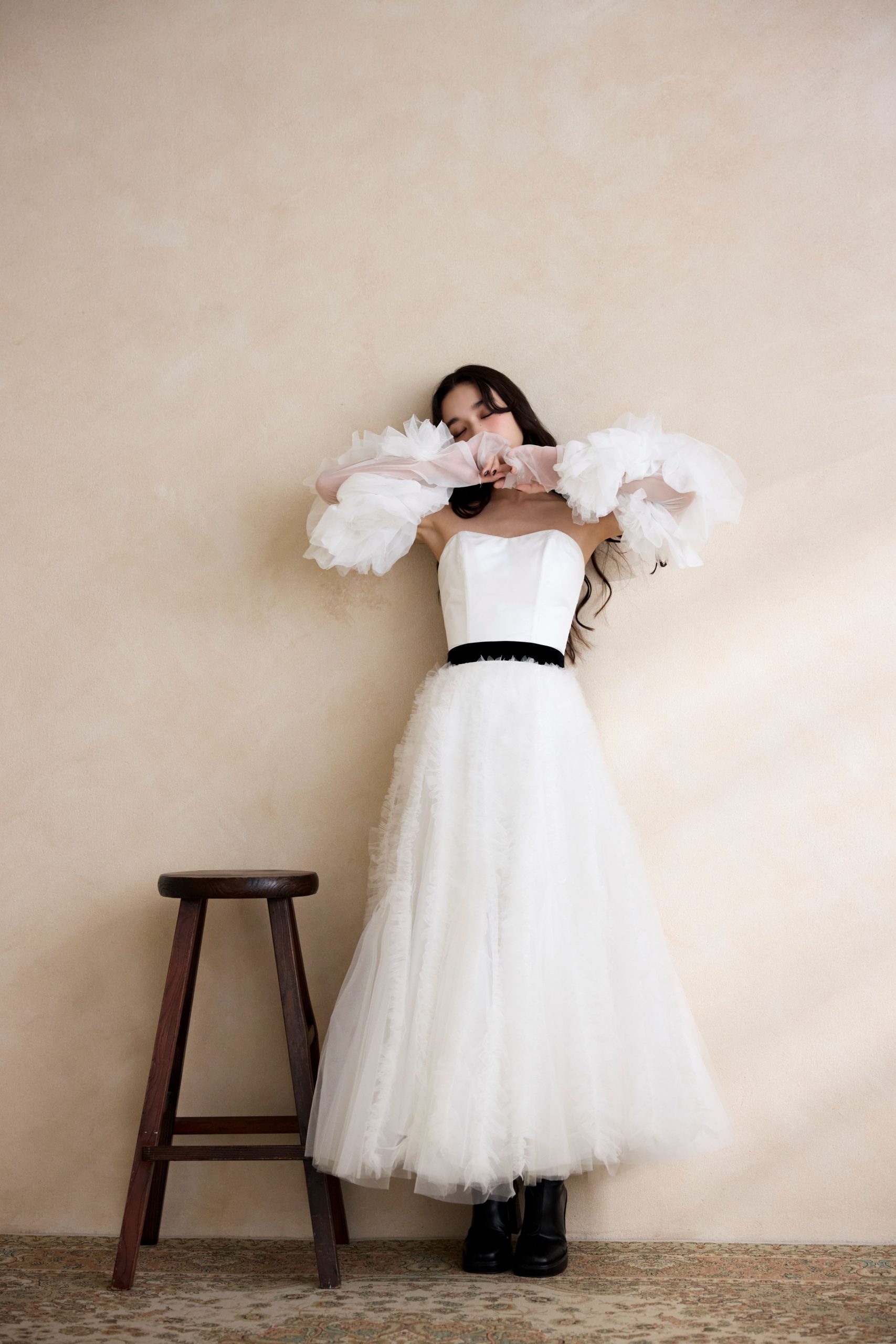 既存のコーディネートは、ボレロ・ワンピース・チュールスカートの3点セットからつくられており、ピースの組み合わせでお好みのスタイルにアレンジすることができます!