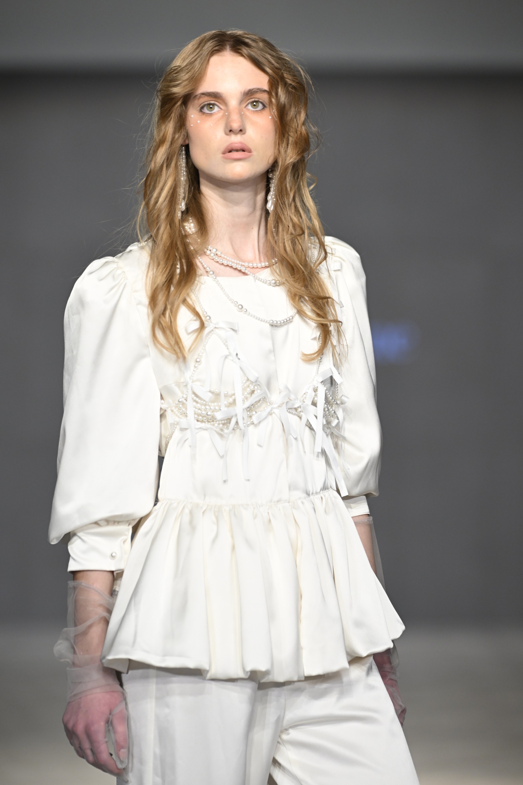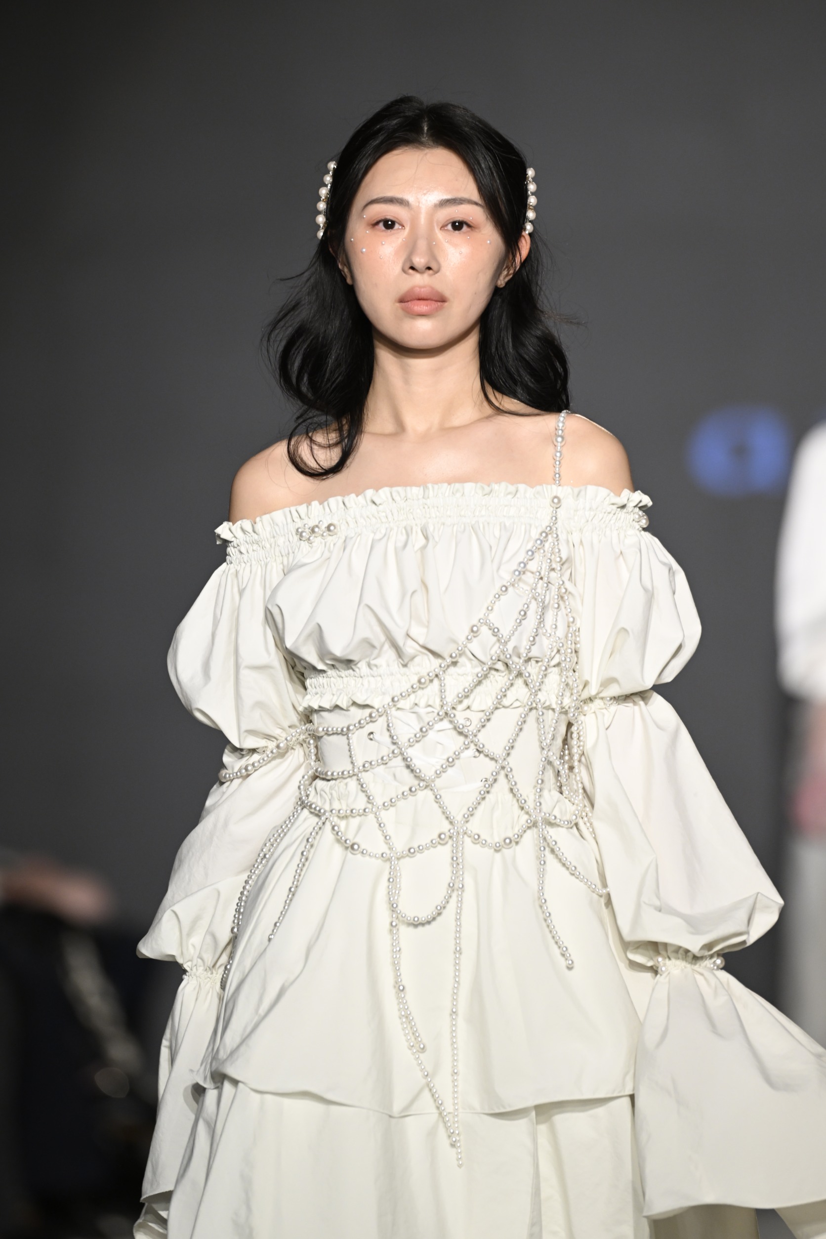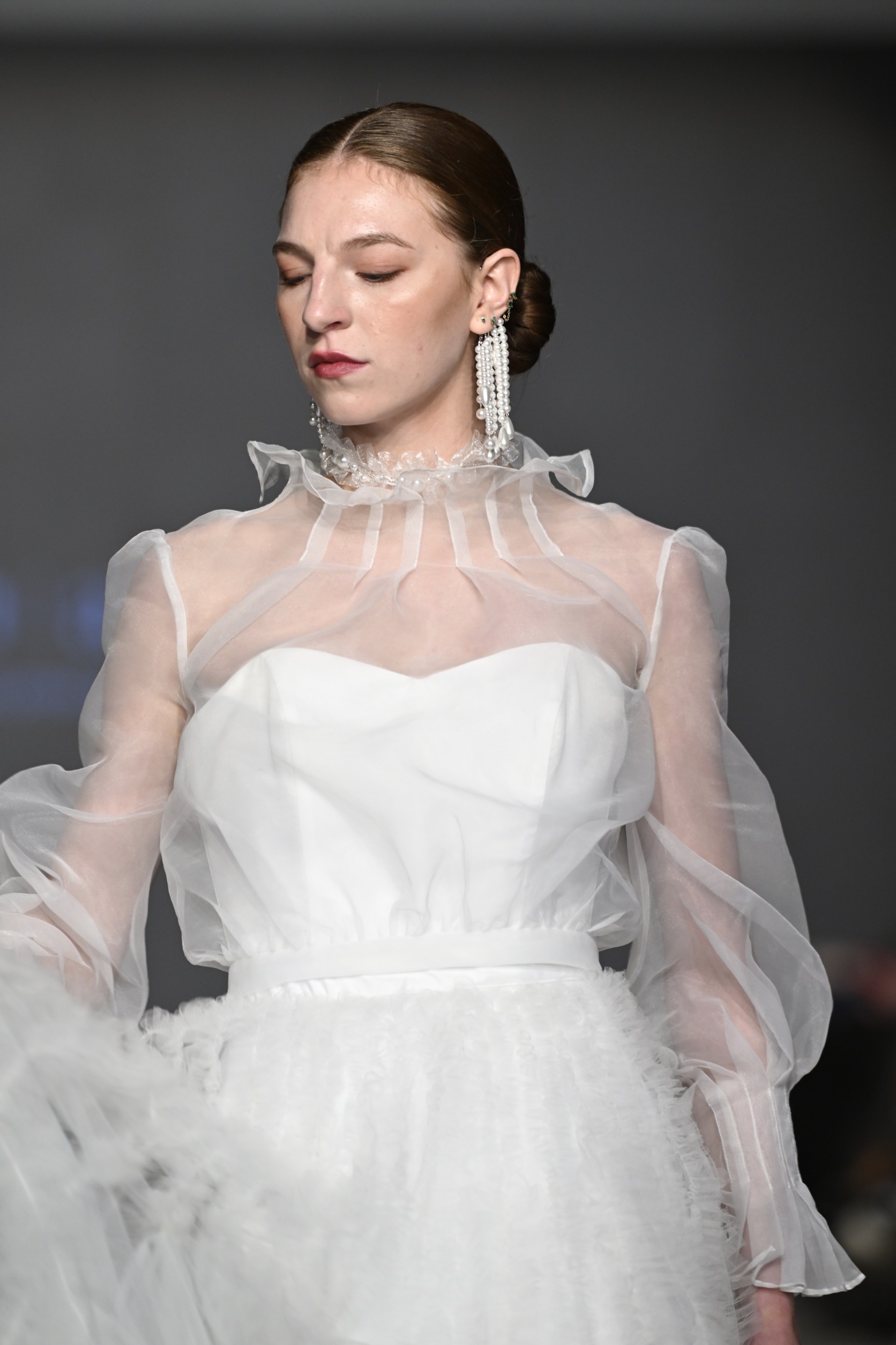 光を含んだシアーな質感と、純白のボリュームが幻想的なシルエットに。