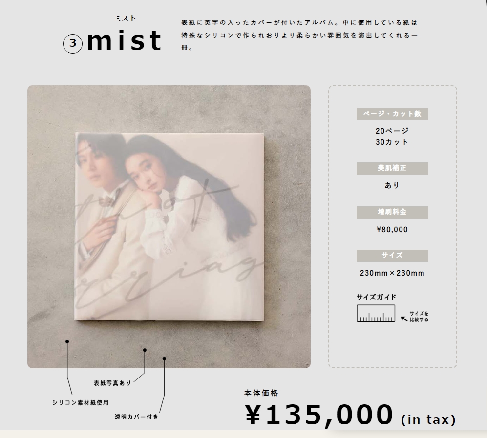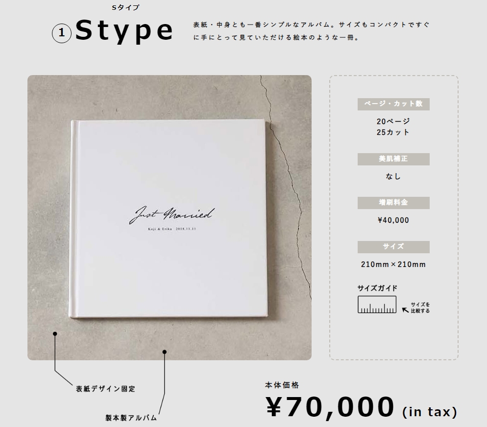 それぞれ仕様やデザインが異なるため、スペックやお好みに合わせてお二人にぴったりのアルバムをお選びいただけます。