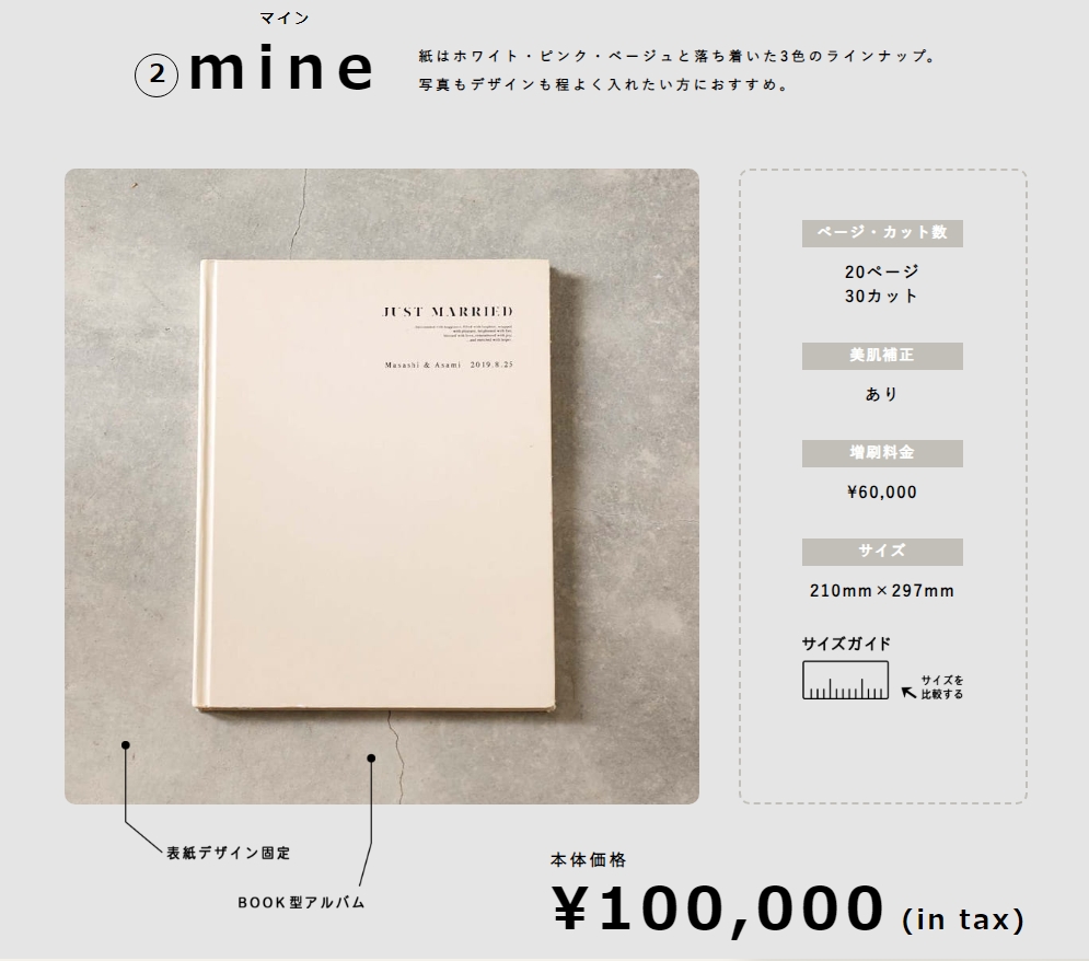 mineは、A4サイズの長方形でBOOK型のアルバムです!