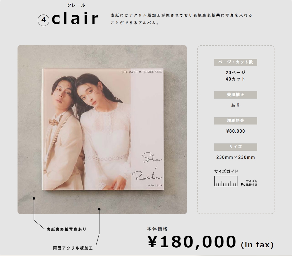 clairは、表紙と裏表紙がアクリル板加工でできているのが特徴のアルバムです!