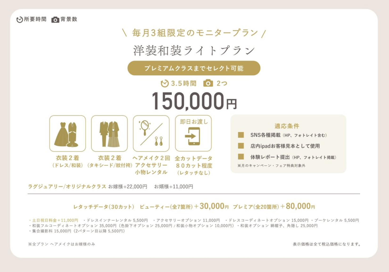 今回は《洋装和装ライトプラン》をご契約頂いたお客様の撮影後インタビューを、素敵なお写真を交えてご紹介! 先輩花嫁様・花婿様のリアルなお声をぜひ最後までご覧くださいませ。